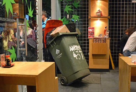 Sehr gewöhnungbedürftig war dann noch der Japaner. Während wir im Restaurant gegessen haben, rollten die Mitarbeiter die Mülltonnen durch den öffentlichen Restaurantbereich, um diese nach draußen auf die Straße zu bringen. Ein nicht gewohnter Anblick:
