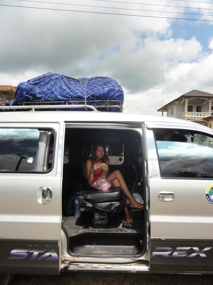 Wir entscheiden uns fuer einen Minivan, um die gefuerchtete Strecke zwischen Vang Vieng und Luang Prabang hinter uns zu bringen. 6 Stunden lang buttelt es uns hin und her, rauf und wieder runter ueber die Berge, welche aber sehr beeindruckend sind.