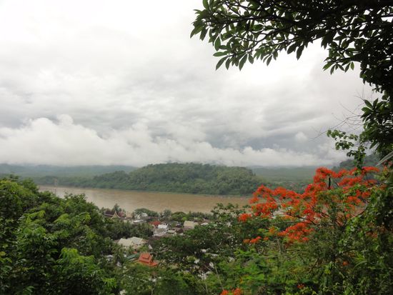 Einen wunderschoenen Ausblick vom Phu Si Huegel in der Mitte der Stadt, Wat Xieng Thong ( Anninas Favorit der bisherigen Tempeln) und der Koenigspalast. Viel mehr gibt es in Luang Prabangs Stadt nicht zu sehen und trotzdem koennte man dort ewig bleiben.