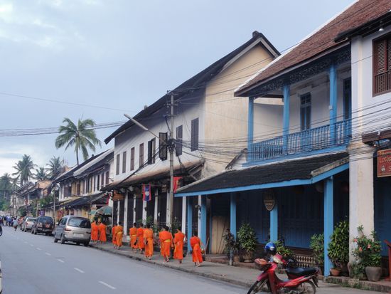 Immerhin gibt es unterwegs viele kleine Doerfchen und Menschen zu sehen. Im schoenen kleinen UNESCO-Weltkulturerbe Staedtchen Luang Prabang ist dann aber ganz schnell jedes Schlagloch wieder vergessen. Natuerlich erst nachdem wir mal wieder einen ganz boesen Asiaten getroffen haben, der uns in sein Guesthouse gelockt hat, dass irgendwie dann ploetzlich an einem anderen Ort als auf der Karte war und auch kein Internet hatte. Ich habe das aber dann am naechsten Morgen mit einem extrem boesen Blick und einem "You are a liar" geloest (Uhhhh schon wieder die Stimmer erhoben...). Nini gab noch ein boesartiges Fuchteln dazu und dann gings uns schon besser und wir konnten das idylische Staedchen beginnen zu geniessen.