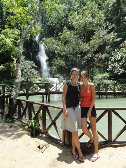 Nachdem wir uns nochmals hingelegt hatten, gings mit einem Jumbo-TukTuk auf zum Tat Kuang Si, dem beruehmtesten und wohl auch schoensten Wasserfall Laos. Ueberall kleine tuerkisfarbene Pools zum Baden und der riesige Wasserfall denn man von unten wie auch von oben (natuerlich erst nach dem 15 minuetigen Klettermarsch, er war wirklich mal wieder sehr anstrengend) bewundern kann. Abends konnten wir uns auf Nachtmarkt mal wieder gar nicht zurueckhalten.
