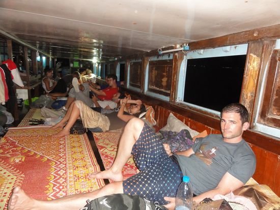 Nach unserem Fullmoonpartydasein ging es weiter zur nächsten Insel. Wir entschieden uns für das praktische Nachtbootangebot. Nach anfänglichem Zögern sahen wir die Bildli von Matratzenlagern auf dem Schiff, die uns sehr positiv stimmten. So wurden wir mit hunderten anderen Backpackern zum Pier in Tongsala chauffiert wo das Schiff auf uns wartete. Und ja, das Matratzenlager gab es wirklich. Einfach im oberen Deck und dieses war bei unserer Ankunft natürlich schon voll belegt. Also wurden wir ins untere Deck beordert wo uns dann mit vielen anderen der Holzboden blieb... In Gebückter Haltung versuchten wir uns so aus herumliegenden Kissen ein Nachtlager zusammenzubauen und schliefen nach anfänglicher Skepsis doch ganz gut.