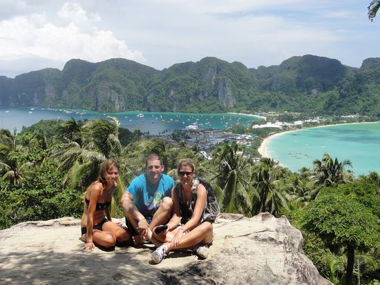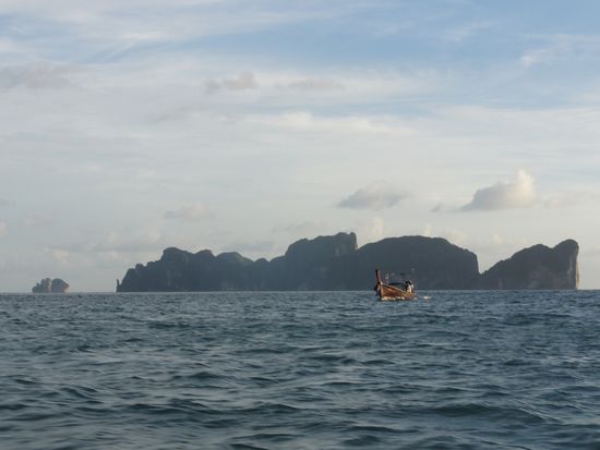 Um die umliegenden Inseln zu erkunden, buchten wir eine der vielen Touren. Am Morgen ging es los mit einem ersten Stopp auf der Bambooisland. Ein kleines Inselchen, welches von weissem feinen Strand umrandet wird. Hier laesst es sich herrlich baden und schnorcheln. Malou sah sogar einen Baby-Hai! Ein Highlight der Tour war der Besuch der Maya-Bay, bekannt als "The Beach" aus dem gleichnamigen Film. Obwohl diese Bucht ein Tourimagnet ist, ist sie wirklich sehenswert. Damit dieser Besuch aber unvergesslich bleibt, sorgt vor allem der Weg dorthin. Aus uns nicht ganz bekannten Gründen können viele Boote nicht direkt in die Bucht fahren. So mussten wir uns also von hinten anpirschen. Die Boote stoppen auf der anderen Inselseite, wo es einen schmalen Felsspalt gibt. Durch diesen mussten wir indem wir zuerst durchs tiefe und stürmische Wasser schwommen, uns dann versuchten wir uns an einem der vielen Seile festzuhalten und dann hangelnd die Treppe versuchten zu erreichen. Der Einstieg ging ja noch, als wir aber zurück wollten, schlugen grosse Wellen gegen die Felswand an welcher sich das Seilnetz befindet. So wurde die Sache fast etwas gefährlich aber halt auch abenteuerlich und unvergesslich.