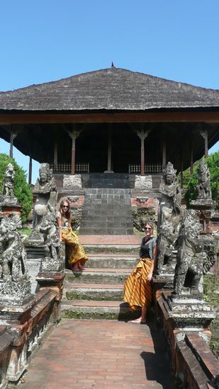Nebst unserem Resortleben, fuhren wir für einen Tag nochmals mit einem Driver durchs Land. Diesmal schauten wir uns die schwarzen Strände an der südlichen Ostküste von Bali an. Wunderschön nur leider nicht so gepflegt, dass es einem zum Baden einladen würde. So schauten wir den Einheimischen zu, welche alle unter grossen Planen kleine schwarze Lavasteine aussortierten. Mit welchem Hintergrund sie das machen, ist uns immer noch nicht so klar, doch die Geschäftigkeit der Leute war beeindruckend. Rührend war auch Ruth... Eine Balinesin welche Christin ist, was sie sehr betont hat. Zuerst freundete sie sich mit unserem Driver an, der selbst aus Flores kommt, einer anderen indonesischen Insel. Flores war früher stark durch die Portugiesen besetzt und ist deshalb hauptsächlich christlich. Da haben sich also zwei gefunden als Minderheit unter den vielen Hindus. Schlussendlich verpflegt Ruth auch uns noch mit ihrer Spezialität. Irgendwelche Blätter gekocht mit Kartoffeln und vielen feinen Gewürzen. Zubereitet hat sie das Ganze am Boden in einem einfachen Kocher. Es war nicht ganz klar ob sie dort lebt oder nur ihr Tageslager aufgebaut hat... Jedenfalls sah man ihr an, dass sie arm ist und trotzdem will sie kein Geld und ist einfach nur gastfreundlich - das macht Eindruck! Überhaupt haben wir viele so herzliche Situationen auf unserer ganzen Reise erlebt. Es scheint uns, dass wir uns von dieser Hilfsbereitschaft und Freundlichkeit der Menschen in Asien ein Stück abschneiden sollten...