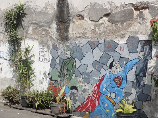 Puh was für ein Verkehr und vor allem was für eine Luft als ich mit dem Zug in Yogyakarta einrolle. Die Strassen sind vollgestopft mit Autos, Bussen, Roller und Becaks den Velotaxis. Ich suche mir gleich in der Nähe ein Hotel und werde dabei bereits vom ersten Einheimischen gestört der versucht mich in eine aussergewöhnliche Ausstellung zu locken, die gleich in 2 Stunden schliesst. Überhaupt kann ich mich glücklich schätzen was da alles gerade nur heute extra für mich geöffnet hat. Wir haben ja schon viel erlebt aber so extrem wie in den nächsten Tagen wurde mir noch nie was aufgedrängt. Drivers, Guides und arme Studenten wollen einem zu speziellen Orten führen wo sie dann billige Kopien von Batikkunst zu überteuerten Preisen verkaufen. Und ich habe mal wieder viele Touristen getroffen die darauf reingefallen sind