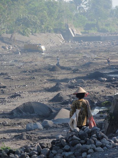Um Borobudur zu besuchen, buchten wir eine Motorradtour im ViaVia Restaurant. Diese bieten etwas speziellere Touren für ganz Java an. Auf dem Rücksitz von 2 jungen Mädchen fuhren wir übers Land zum Tempel, wo noch überall die Aufräumarbeiten vom Ausbruch des Merapivulkans vom letzten Jahr im Gange sind. Ganze Dörfer liegen in Schutt und Asche und die Menschen füllen Lastwagen um das Gestein für 7 SFR pro Wagen zu verkaufen. Die Mädchen erzählen uns viel über das Leben in Java und wir über unseres Zuhause. Gemeinsam kommen wir zum Schluss dass sich die 2 ein Leben in der westlichen Welt niemals vorstellen könnten, wir uns ein Leben in ihrer Welt aber schon...