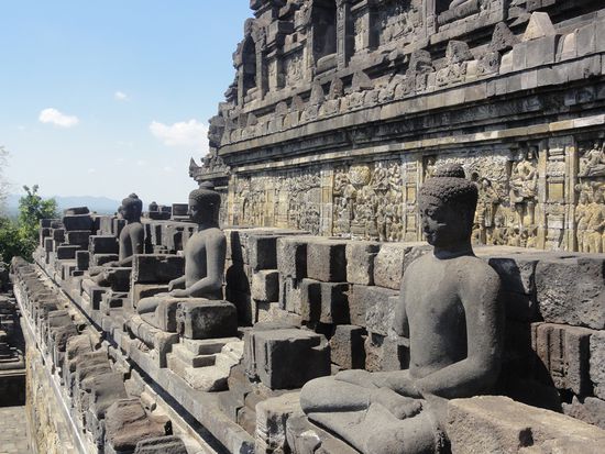 Den Borobudur besichtigen wir zusammen mit vielen anderen Touristen aus aller Welt aber auch vielen aus Indonesien.