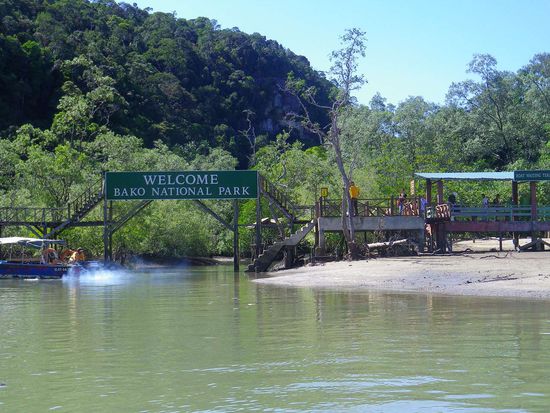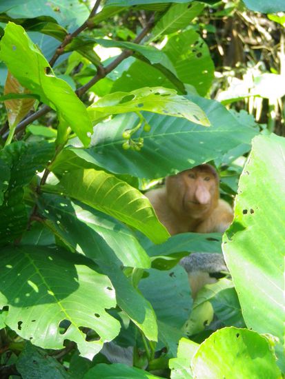 Am nächsten Morgen machten wir uns auf zum Bako Nationalpark. 30 Minuten Busfahrt und 15 Minuten Bootsfahrt und schon sind wir im dichten Dschungel. Es hat verschiedene Trails ganz unterschiedlicher Dauer und Schwierigkeit. Wir kämpften uns zu einem Aussichtspunkt und an den Strand. Es war unglaublich heiss und feucht, aber wir hatten viel Glück und konnten sogar ohne Guide den berühmten Nasenaffen sehen. Diesen soll es nur noch in Borneo geben und er ist im Gegensatz zu den frechen Makaken auch ziemlich scheu. Sonst sahen wir so dass übliche wie Schlangen, Spinnen und Insekten. Die Mücken und Blutegelplage war aber nicht halb so schlimm wie überall gewarnt wird.