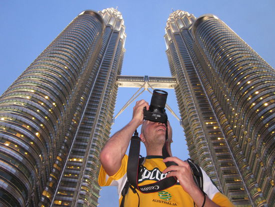 Und letzter Programm-Punkt fuer Kuala Lumpur: im KLCC Park auf die Daemmerung warten und Fotos von den Petronas Towers am Abend machen...