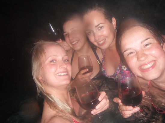 Am Dienstag haben wir erst zusammen Singstar und Rock Band gespielt und ein bisschen Goon getrunken. Irgendwann sind wir dann auf die Idee gekommen, in den Pool zu springen. War so halb 1 ungefähr Das Wasser ist so kalt, dass wir unter Tags nie reingegangen sind aber wenn man dann mal drin war gings eigentlich.