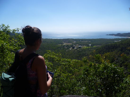 Am 24.06. haben wir dann einen Tagesausflug nach Magnetic Island gemacht. Die Insel liegt direkt vor Townsville und mit der Fähre ist man in ca. 20 min da. Dort angekommen haben wir uns gleich auf eine ca. 6km lange Wanderung vom Nelly Bay zum Alma Bay gemacht, der leider nicht wie wir gehofft hatten schön eben dahinging sondern wieder eine Menge Klettern beinhaltete. Da haben wir auch noch den Muskelkater vom letzten Tag ordentlich gemerkt! Na Gottseidank hatten wir beide unsere Wander-FlipFlops an Und weil wir dann so in Wanderlaune waren haben wir auch gleich noch den 4km Weg zum Horseshoe Bay angehängt. Landschaftlich ist die Insel wirklich wunderschön, und nach anstrengenden fast 5 Stunden haben wir dann noch gemütlich am Strand von Horseshoe Bay ein bisschen entspannt, bevor wir mit Bus und Fähre wieder zurück ans Festland gefahren sind
