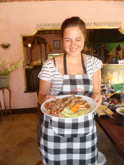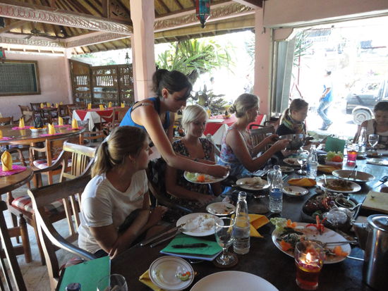 In Ubud haben wir dann auch noch einen balinesischen Kochkurs gemacht, das wird in ganz vielen Restaurants angeboten. Zuerst sind wir alle zusammen auf den Markt gegangen und unser Kursleiter hat ein bisschen was über die verschiedenen Gewürze usw. erzählt. Danach haben wir insgesamt 6 verschiedene Gerichte gekocht und natürlich auch gegessen