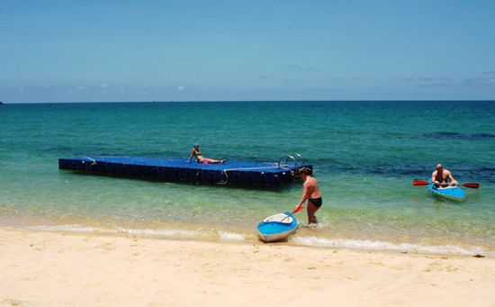 Zum Glück gab es eine Plastikinsel auf der wir uns gesonnt haben und wenn wir mal "Aktion" haben wollten, sind wir mit den Kajaks oder dem Wasserdreirad gefahren.