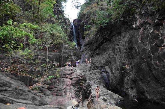 Im Zentrum der Insel, von unserem Standort gut zu erreichen befindet sich der Klong Plu Wasserfall, der "größte" der Insel. Von einem Parkplatz im Inselinneren sind es vielleicht noch 1000 m durch den wald zu laufen, bis man den Wasserfall erreicht. Unterwegs geht man entlang eines bachlaufs durch lichten aber schönen Wald mit vielen Schmetterlingen und Eidechsen.