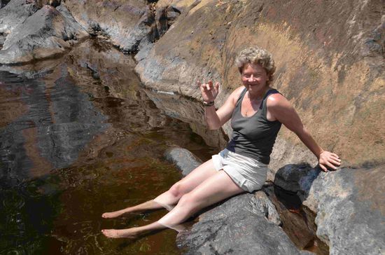 Hier können wir ganz allen baden und uns ausruhen. In dem kleinen Naturbecken unterhalb des Wasserfalls schwimmen kleine Fische die , sobald man ruhig im Wasser liegt, an der haut zu knabbern anfangen.