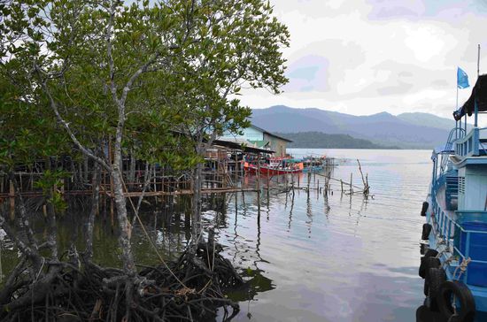 Gegen Mittag erreichen wir Salak Peth, ein kleines Fischerdorf am Südrand inmitten von Mangroven.