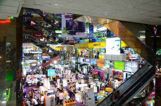 Im Pantip Plaza wird nur mit Elektronik gehandelt! Vorwiegend Computer und Handys, aber auch Fotoapparate. Reparaturwerkstätten usw. sind ebenfalls vorhanden, wers braucht, bekommt mal eben schnell eine Leiterplatte zusammengelötet. Das Ganze ist auf 6 oder 7 Etagen verteilt. Man weiß eigentlich gar nicht, wo zu erst hingucken.