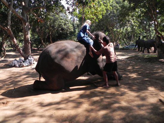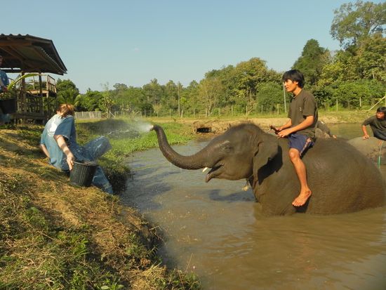 Übrigens sind wir nun halb-echte Mahouts. Einen ganzen Tag verbrachten wir im Baanchang Elefantencamp (für happige 2400 Bath). Nachdem wir die Elefanten ausgiebig mit Bananen und Zuckerrohr gefüttert hatten, wurden uns die Kommandos beigebracht und nach einer Trainingsrunde ritten wir ohne Sattel (aber natürlich mit Mahout an der Seite) durch den Dschungel. Das abschliessende Highlight war ein Bad mit den Elefanten im See, was super viel Spaß gemacht hat.