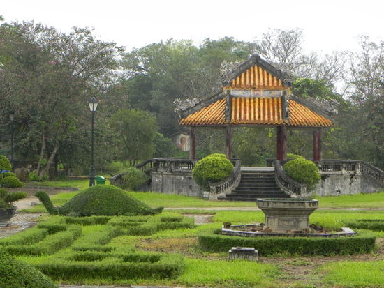 Nach 14 Stunden Fahrt haben wir Hue erreicht, ein Hotel (durchaus empfehlenswert: Ngoc Binh für ca. 8 EUR/Nacht) gesucht & gefunden und uns dort für den Tag Fahrräder gemietet. Damit sind wir dann zur Zitadelle geradelt. Hier befindet sich die uralte Kaiserstadt (erbaut ca. 1818) in der bis 1945 der letzte Kaiser residierte. Das Gelände hat einen Umfang von ca. 10 km, danach taten uns ziemlich die Füße weh, die Anlage ist doch sehr weitläufig.