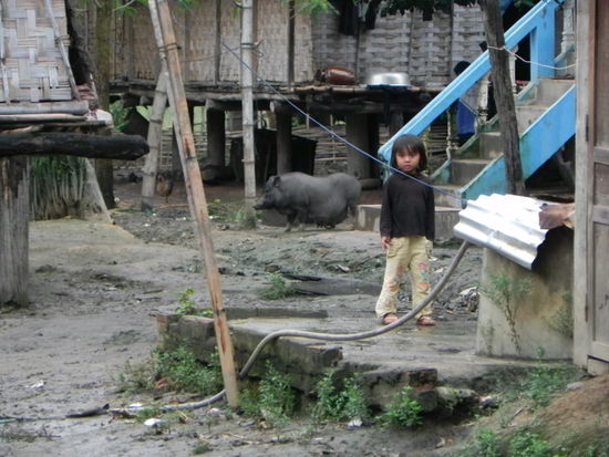 Besonders ausführliche Infos gibt es zum Minderheitendorf "Jun". Verschiedene Vökergruppen wurden in diese Region umgesiedelt und leben hier nun in erbärmlichen Verhältnissen. Etwas missmutig erklärt er uns, dass die Regierung hier u.a. für Schulbildung und ärztliche Versorgung aufkommt, er hingegen für seine zwei Kinder Schulgeld zu zahlen hat. Das Verhältnis zu diesen Völkern ist spürbar schlecht.