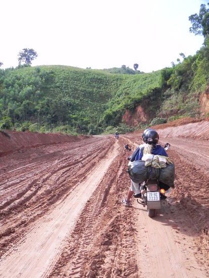 Geübt schwingen wir uns heute in den Sattel und fahren nach Dalat. Die Stecke führt über dschungelbewachsene Berge und durch Täler, endlose Serpentinen. Die Strassenverhältnisse sind nicht besonders gut: manche Strassen scheinen nur aus Schlaglöchern zu bestehen, an anderen Stellen stecken wir im Matsch fest.