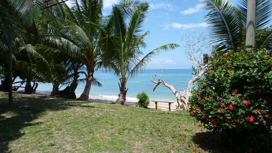 Zum Wandern eignet sich super ein Weg, der quer über die Insel zum Dorf Kampung Juara führt. Dabei läuft man zuerst auf einem Weg durch eine alte, verwucherte Kautschukplantage und Dschungel auf einen ca. 500 m hohen Bergrücken, dann geht es auf der anderen Seite wieder hinunter: das erste Stückchen noch durch den Dschungel, relativ bald geht es dann aber auf einer Straße weiter, die stellenweise sehr steil bergab führt. In Kampung Juara angekommen kann man dann eine malerische Bucht genießen, mit einem deutlich breiteren Strand, als es ihn in Air Batang gibt. Viel mehr außer ein paar Bungalows, Restaurants und sonstige Hütten gibt es allerdings auch nicht, und da wir unsere noch sehr vornehm-blässliche Haut nicht zu sehr der Mittagssonne aussetzen wollten, haben wir uns nach einem leckeren frischen Frucht-Milchshake und einem kurzen Nickerchen im Schatten einer Palme wieder auf den Weg zurück gemacht. Hier war das erste Stückchen Straße das härteste, weil es hier deutlich wärmer war als im Dschungel. Zusammen mit der hohen Luftfeuchtigkeit und der großen Steigung war das mittags nicht so ganz ohne... der Rest des Weges im Dschungel war dann aber wieder ganz angenehm, und so haben wir - wie auch für den Hinweg - wieder ca. 2,5 h gebraucht. Insgesamt ein sehr schöner Ausflug, leider haben wir außer einem Affen, der relativ weit weg war und vielen Insekten nicht viele Tiere gesehen. Und da Affen hier in Air Batang keine Scheu haben in 10 m Entfernung von uns ihr Frühstück einzunehmen und regelmäßig Warane durch die Gegend spazieren, war das in dieser Hinsicht eher enttäuschend. Es muss aber irgendwo in dem vielen grün sehr viel mehr Tiere gegeben haben - zu hören waren die nämlich sehr deutlich