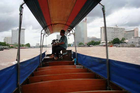 Heute sind wir nach einem leckeren Frühstück mit so einem Speed Boot über die Klongs bis zum Königspalast gerast!