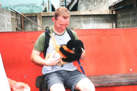 Es gab auch Krokodile, ein paar Vögel und sogar Affen. Ganz kleine Affen und einer wollte gleich Daniels Brille stehlen, dann war er aber doch brav uns setzte sich auf seinen Arm - voll süß! Und die waren mit Babyshampoo gewaschen und rochen voll fein!!!
