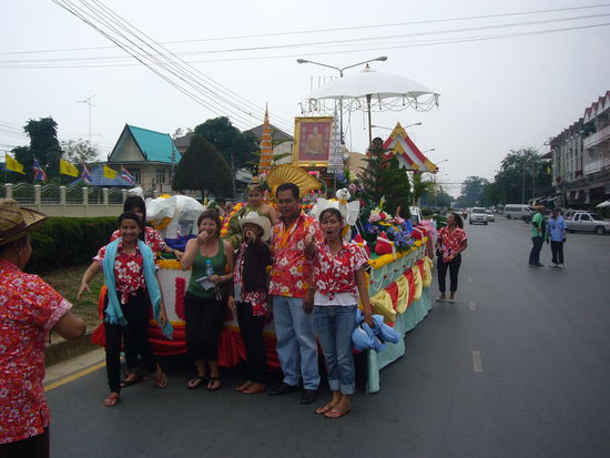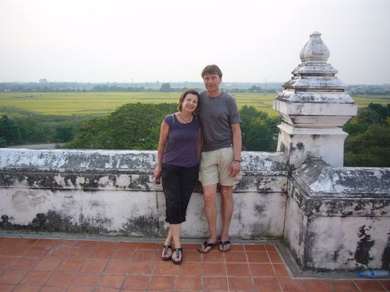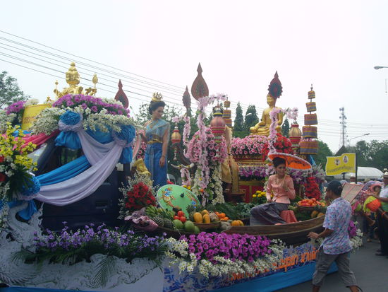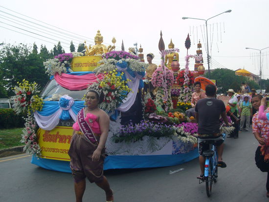 Mit 2 Stunden Verspätung sind wir morgens um 7 in Ayutthaya (die alte Königsstadt) angekommen. Auch hier haben die Songkran-Feiern begonnen: ein wunderschöner Umzug ohne Wasserschütten, mit viel Trommelmusik und wir als die 2 einzigen Turis mittendrin. Bei einer nächtlichen Tempel-Sightseeing-Tour mit einem Tuk-Tuk wünschten uns alle viel Glück für das Neue Jahr und sparten dabei nicht mit Wasser und Lehmpasta.