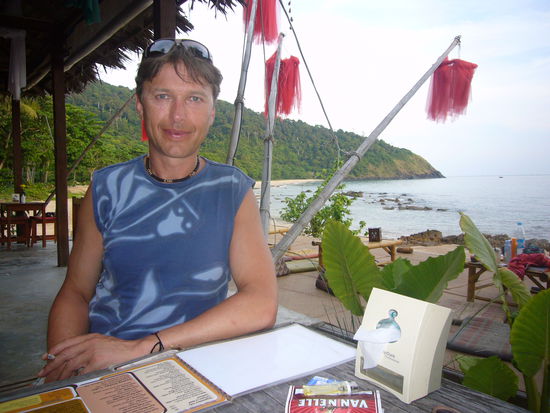 Wir sind am Long Beach auf Koh Lanta. Hier hat sich in den letzten 6 Jahren nicht viel verändert. Der Beach ist immer noch wunderschön und herrlich ruhig. Die Klapaklum-Bar steht nicht mehr beim Palm Beach Resort, sondern 400 m südlich. Nach der ersten Nacht in einem einfachen Bungi sind wir in das schöne Resort Nakara umgezogen. Ein Vorteil der Nachsaison: 3x schlafen und nur 2x zahlen. Mit dem Moped haben wir auch bereits die Insel erkundet und dabei viele Plätze zum Relaxen und Träumen entdeckt. Kulinarisch gibt uns diese Insel auch alles. Ob abends Fisch vom Grill direkt am Meer oder am Nachmittag herrliche Fischsalate mit Herbs in der Bamboo Bay (letzte Bucht weit abseits an der Westküste - hier gibts auch nette Bungis!!!) und die spicy Currys - hmmmm!
