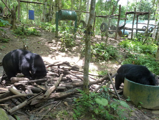 Die Gegend beim Wasserfall erkundete ich mit 2 Mitreisenden aus dem Minivan, da Olli weiterhin ans Bett bzw. an die Kloschluessel gefesselt war. Auf dem Gelaende war dann auch noch ein Gehege mit Baeren, die artig fuer die Kamera posierten, oder einfach nur zu faul zum Bewegen waren.