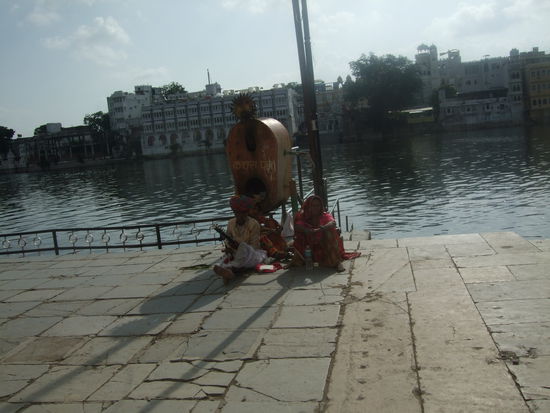 In Udaipur kamen wir morgens gegen 7 Uhr an und gingen in ein Hotel, welches ich am Vorabend im Internet herausgesucht und angerufen hatte. Wir hatten einen Nachtbus und schliefen garnicht im Hotel, sondern machten uns nur frisch, bevor wir uns aufmachten, die Stadt zu erkunden. Nachtbusse sind uebrigens nicht wirklich zu empfehlen. In Zuegen schlaeft man ruhig und in frisch gemachten Betten. Im Nachtbus hingegen lagen wir auf einer wirklich eklig und stinkenden Matratze und bei den schlechten Strassen in Indien flogen wir staendig umher.