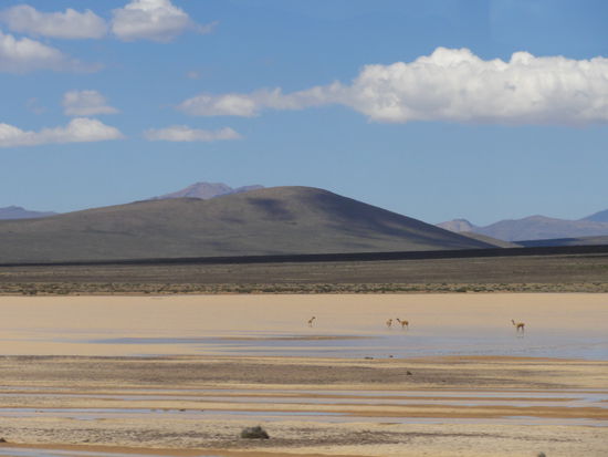 Nach einem feinen, aber improvisierten Fruehstueck begann unser Trip in den Colca Cañon in einem Bus, gefuellt mit Touristen. Beim ersten Stop, mit WC-Moeglichkeit, deckten wir uns mit allen vorhandenen Koka-Prdukten ein - Vorsorge auf natuerlicher Basis fuer die Hoehenkrankheit, wohlgemerkt. Auf einer langen Fahrt mit Blick auf 3 Vulkane, die mindestens 5800 m.ue.M massen, genossen wir die wunderbaren Landschaften der Anden. Unsere Route fuehrte uns durch einen Nationalpark, in dem Pecuñas heimisch sind.