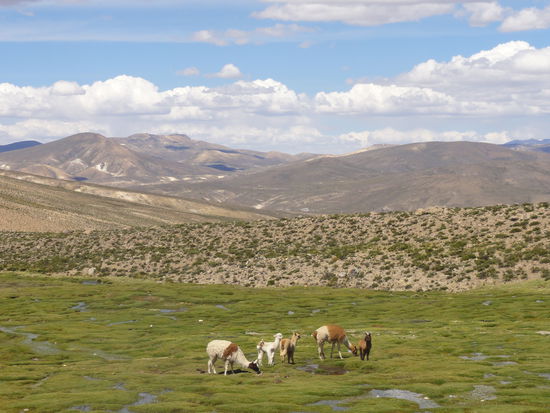 Auch friedlich weidenden Lamas und Alpacas begegneten wir zum ersten Male.