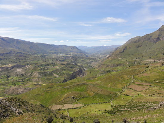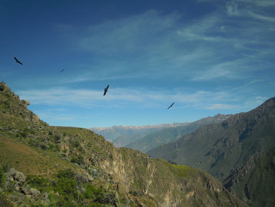 Nach einer sehr kurzen Nacht und einem Continental Breakfast mit einem netten deutschen Paar, fuhren wir durch den Cañon zu einem Aussichtspunkt, wo wir Kondore, welche zu den groessten flugfaehigen Voegeln der Erde zaehlen, beobachten konnten. Ein phaenomenales Erlebnis!