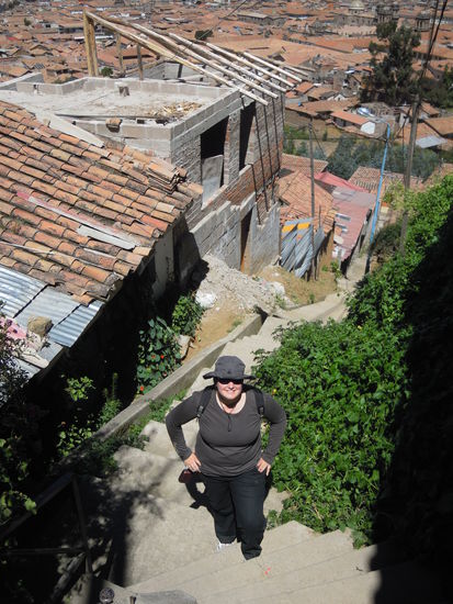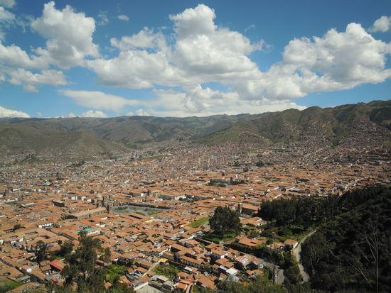 Den heutige Tag sind wir beide ruhig angegangen, denn ausnahmesweise haben wir den Wecker erst auf neun Uhr gestellt. Ausgeschlafen und ausgeruht - zumindest in meinem Fall, denn Irenes Matratze war nicht mehr die juengste und daher etwas unbequem - assen wir in eine kleinen Lokal Fruehstueck. Anschliessend begaben wir uns auf den Weg zu Cristo Blanco. Dies ist eine riesige Jesusstatue, die am Berg ueber der Stadt Cuzco wacht. Dies war, wie wir wussten, ein etwas schwieriges Unterfangen, da sich diese in einem Touristengebiet neben einer Inkaruine befindet, fuer welche man ein grosses Eintrittsgeld bezahlen musste. Allerdings haben wir uns erkundigt und erfahren, dass dies fuer die Statue nicht gilt und es gewisse Moeglichkeiten gibt, gratis dorthin zu kommen. Es fuehren ja bekanntlich viele Wege nach Rom. Um es vorwegzunehmen: wir haben einen Weg gefunden, aber natuerlich keinen, den man uns empfohlen hatte - wir waren erfinderisch.