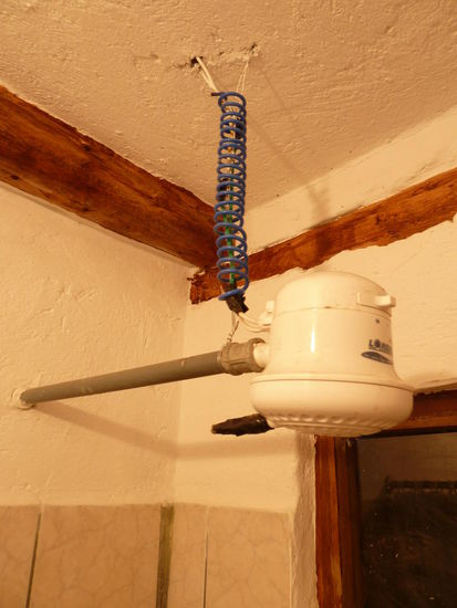 Im Hostel Santa Cruz auf Santa Cruz, und in den Hostels in Cotacachi und Tena fand ich ein Stück ecuadorianischer High-end-Technologie - den "Durchlauferhitzer-Duschkopf". Eigentlich ja keine blöde Erfindung - Wasser kalt wird in den Duschkopf geleitet und in selbigem erhitzt.
