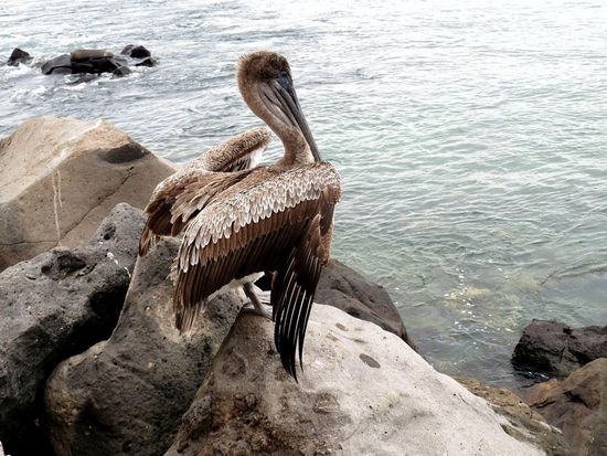 Thema Seelöwen: Was wirklich ein wahnsinns Spass ist, Seelöwen überall. Unter und auf Parkbänken, auf Mauern, mitten über Gehwege liegend, in Wartehäuschen, am Pier, auf Booten im Hafen und selbstverständlich auf Stränden. Interessant und einzigartig dabei ist, dass so gut wie alle Tiere hier keine schlechten Erfahrungen mit der Spezies Mensch haben und somit den Menschen nicht als Feind ansehen. So schrieb der Bischof von Panama Tomas de Berlanga der diese Inseln als Erster entdeckte (als er auf seiner Reise in den Süden mit seinem Schiff ein wenig vom Kurs abkam ,.....hmmm......also die rund 1000 km, die die Galapagos Inseln vom Festland entfernt sind,.......?!?.....offensichtlich ein ganz toller Seemann seiner Zeit ) an den spanischen König "....und Vögel, so blöd, dass sie nicht wussten wie man flüchtet und somit einige per Hand gefangen wurden."