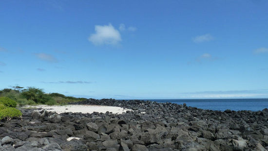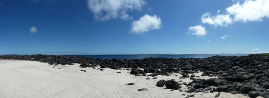 Nach einem kurzen Mittagessen ging es dann nochmals für rund eine Stunde zum Schnorcheln. Für unser geplantes zweites Ziel "Islas Lobos" blieb leider nur noch rund eine halbe Stunde Aufenthalt übrig, da unsere Taucher bei Kicker Rock recht lange unter Wasser blieben und der Trip wohl eher auf die vier Taucher (die zahlten ja auch jeder das dreifache) ausgelegt war. Die Zeit reichte aber für einen kurzen Gang an dem wunderschönen, menschenleeren, weißen Sandstrand. Sandstrand ist hier aber eigentlich gar nicht das richtige Wort. Denn wie mir unser Guide erklärte, sind die Galapagos Inseln ja Vulkaninseln und bestehen somit vorwiegend aus Basalt. Weißer Sand ist somit gar nicht (bzw nur in Ausnahmefällen) möglich. Was aussieht wie weißer Sand ist das Ergebnis aus über Jahrmillionen im Meereswasser zerriebenen abgestorbenen Muscheln, Seesternen, Seeigel, Korallen, usw. Das wir keinen Schnorchelgang bei den Islas Lobos machen geht im Nachhinein betrachtet in Ordnung, da die Erlebnisse bei Leon Dormido einfach überwältigend waren. Da es für mich mein erster Meeresschnorchelgang mit Haien, Meeresschildkröten, Seelöwen und kleineren Fischen war, fand ich die Tour fantastisch. So zwischen all diesen Meeresbewohnern einfach nur zu treiben ist lustig, entspannend, interessant und vor allem aufregend.