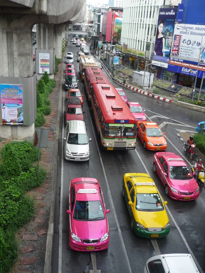 Nachdem unser Zug mit 1,5 Stunden Verspätung eingetrudelt ist und wir uns halbwegs in unserer Kabine eingerichtet haben (winzig klein, aber wir haben 2 Betten), konnten wir die 11 stündige Fahrt doch recht gut zum schlafen nutzen. Bangkok hat uns im strömenden Regen erwartet - juhu! Im Hotel angekommen mussten wir noch auf unser Zimmer warten, bevor wir endlich unser Gepäck loswerden konnten.