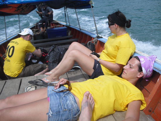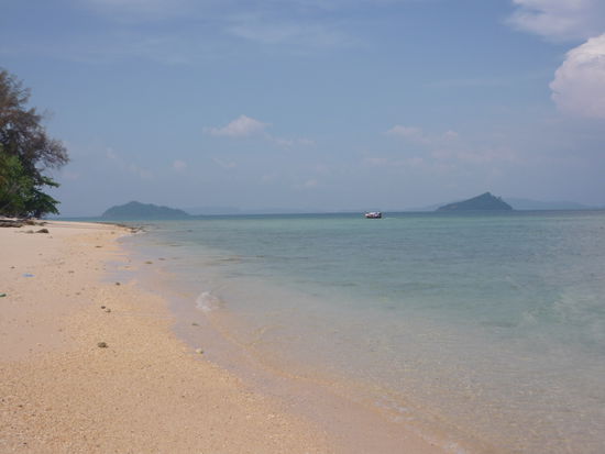 Geplant war, dass wir um 10 Uhr mit dem Longtailboot nach Koh Muk fahren und von dort aus direkt weiter nach Koh Bulon Lae. Als wir am Morgen dann zum Fruehstueck kamen, wurde uns in thailaendischer "uns bringt nichts aus der Ruhe Manier" mitgeteilt, dass von Koh Muk aus keine Boote mehr uebersetzen ("not enough people"). Okay, also den Plan ueber den Haufen werfen und erstmal zurueck nach Hat Yao. Dort dann mit einem privaten Fahrer nach Pakbara, wo wir glorreich fuenf Minuten nachdem die letzte Faehre ablegt, angekommen sind. Also wieder eine Planaenderung und weiter mit einem privaten Boot nach Koh Bulon Lae. Nach einer 1 stuendigen Bootsfahrt sind wir in einem kleinen Paradis angekommen. Ein traumhaft schoener Strand mit superschoenen Huetten und kaum andere Gaeste (ab dem 2. Tag waren wir nur noch zu sechst) hat uns erwartet.