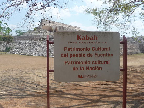 Nachdem wir am frühen Morgen die wichtigste Tempelstadt der Puuc Region Uxmal besucht haben ( Uxmal Bericht siehe auch mein Reisebericht Mexiko 2009 ) geht es nun nach Kabah der zweitwichtigsten Mayastadt der Puuc Region. Kabah heißt Herr der starken Hand.Erbaut wurde die Stadt zwischen den 6. und 9. Jahrhundert und erreiche seine Blütezeit vom 9. bis 11. Jahrhundert. Ab den 11. Jahrhundert wurde Kabah von seinen Bewohnern wieder aufgegeben. Einmalig im Maygebiet ist wegen der gut erhaltenen und zahlreichen Masken des Regengott Caak der Palast der Masken.Der Eintritt betrug 37 Pesos = 2,20 Euro.
