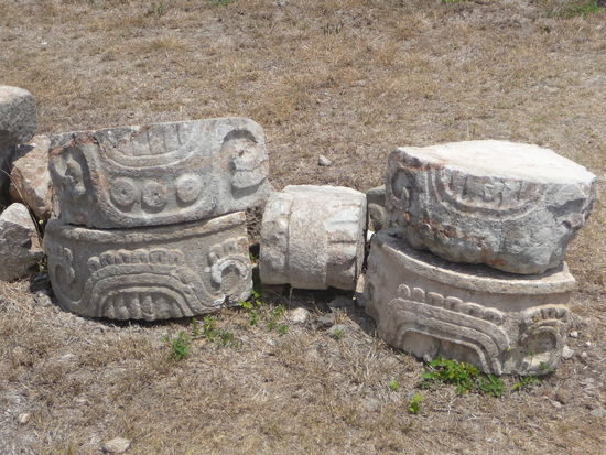 Chaak Masken am Palast - oben sieht man noch eine vollständig erhaltene Nase des Regengottes - bei den anderen sind leider die Spitzen abgebrochen.