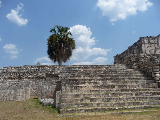 Arco de Kabah mit 6,5 m Höhe und über 4 m Spannweite ist er der größte Torbogen im ganzen Mayagebiet. Er steht direkt neben der Grand Pyramide die noch nicht ausgegraben ist und unter Schutt und Vegetation verborgen liegt.