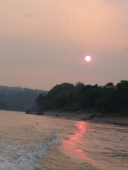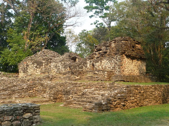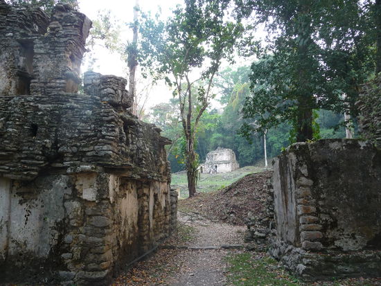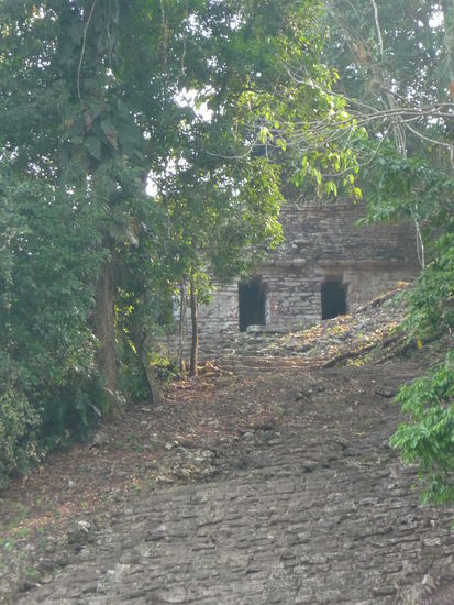 Nach einer Stunde Bootsfahrt haben wir also Yaxchilan erreicht das direkt am Grenzfluß Rio Usumacinta mitten im unzugänglichen tropischen Regenwald liegt und soviel wie " Ort der grünen Steine heißt ". Entstanden um 300 n. Chr. während der klassischen Mayaperiode entwickelte sich Yaxchilan schnell zu einen der großen Stadtstaaten und wurde Hauptstadt der Region. Seine größte Macht hatte Yaxchilan während der Herrschaft von König Schild Jaguar II. der über 90 Jahre alt wurde und 742 n. Chr. starb.Berühmt ist die Mayastadt besonders wegen der großen Anzahl von Steinskulpturen,Stelen und Türstürze von denen viele schon 1882 ein Jahr nach der Endeckung der Mayastätte nach London transportiert wurden und dort zum Teil im Museum zu sehen sind.Weitere Skulpturen und Stelen sind auch im Anthropologischen Museum von Mexiko City zu sehen.Durch seine Lage ist Yaxchilan noch wenig besucht von Touristen und wird eher von Brüllaffen,Tukans und anderen interessanten Tieren bewohnt.Leider habe ich von den wunderschönen bunten Tukanen keinen aufs Foto bekommen da diese zu schnell waren.Es herschte dort eine sehr hohe Luftfeuchtigkeit und große Wärme die mich ordentlich zum schwitzen brachten.
