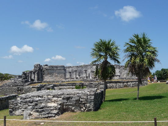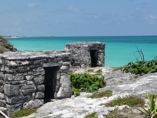 Wie ich bereits in der Einführung geschrieben habe geht es in dieser Reise zu einen großen Teil um das besichtigen von bedeutenden Mayastätten. Die Mayakultur gilt als eine der höchstentwickelten im vorspanischen Amerika. Uxmal und Palenque werde ich hier nicht noch einmal erwähnen da ich diese bereits vor 2 Jahren während meiner ersten Mexiko Reise besucht habe ( siehe Bericht ). Ansonsten habe ich von den bis heute ca. 70 größeren mehr oder weniger bekannten Stätten 10 besucht wovon Tulum den Anfang macht. In diesen Zusammenhang möchte ich erwähnen das die Forschungen der Mayastätten ständig weitergehen und immer wieder neues endeckt wird.Ganz Aktuell im Mai 2011 kurz nach meiner Ankunft in Deutschland wurde bekannt das in der Umgebung von Merida bisher 7 unendeckte Mayastätten mit den Namen Oxmul, Polok Ceh , Nichak, Cuzam , Chan Much , Tzakan und Chankiuik gefunden wurden. Neben Resten von Gebäuden und menschlichen Gebeinen legte man auch reiche Grabbeigaben u.a. aus Keramik frei. Allein in Oxmul fanden die Forscher 75 Skelette. Die neuen Funde belegen das der Norden von Yucatan schon seit 400 vor Chr. besiedelt war und nicht erst seit der Klassischen Periode 200 bis 600 nach Chr..