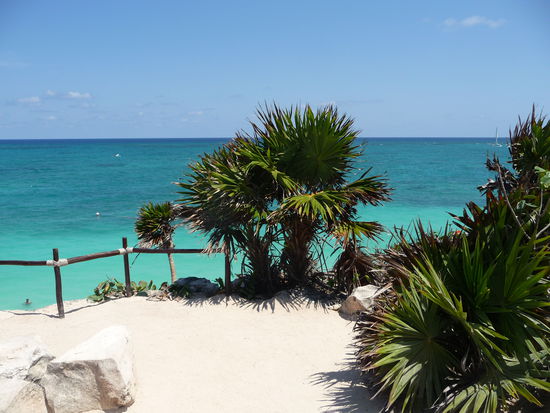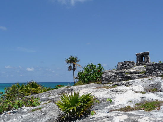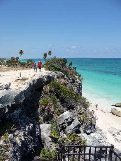 Tulum ist mehr als 1000 Jahre alt und war im 13. Jahrhundert eine der größten Städte auf Yucatan.1530 eroberte der Spanier Francisco Montejo die Küstenstadt als diese bereits im Niedergang war.Wegen seiner günstigen Lage zum Meer war Tulum ein wichtiger Handelsknoten der Maya.Genau wegen dieser Lage ist es sicher heute einer der schönsten Mayastätten den ansonsten ist diese im Vergleich zu anderen im Landesinneren liegen Mayastätten nicht so sehr von Bedeutung.Mir hat es in Tulum besonders gefallen wegen der schönen Farben der Karibik auch wenn es wie überall auf Yucatan sehr warm war wie man an dem ein oder anderen Foto von mir sehen kann.