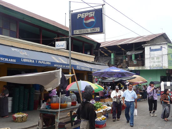 Nach gut 30 Minuten Bootsfahrt über den Atitlan See erreichen wir Santiago de Atitlan ein weiteres Mayadorf was aber größer,bunter und sehenswerter ist als das was wir am Vormittag zu Gesicht bekommen haben. Es ist das bedeutenste Dorf am Atitlan See. Die Mehrheit der Bewohner gehören zu den Tz utujil einer Untergruppe der Maya. Hier hat auch die Cojolya Weberei Ihren Ursprung und Ihre Heimat was man auch an den vielen bunten Ständen sehen kann.Während des Bürgerkriegs war Santiago am schlimmsten von den Verbrechen des Militärs betroffen. Innerhalb weniger Jahre wurden mehr als 300 Bewohner ermordet.