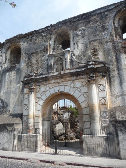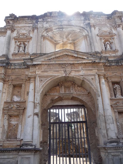 Antigua ist besonders wegen seiner ca. 50 Kirchen und Klöster berühmt auch wenn viele davon nur noch als Ruinen erhalten sind weil diese durch Erdbeben zerstört worden sind ist doch noch die alte Pracht zu erahnen . Für mich ein Grund diesen Gebäuden ein Extra Kapitel zu widmen.Wenn man durch die Stadt läuft und die vielen Kirchen sieht erinnert man sich doch schnell an Rom nur das dort die Gebäude besser erhalten sind. Das Kloster Santo Domingo aus dem Jahr 1525 war das erste und auch größte und prächtigste.Heute ist in dem Kloster ein Nobelhotel integriert.Ich habe es auch besucht doch leider habe ich wie auch von einigen anderen Kirchen keine Fotos davon.