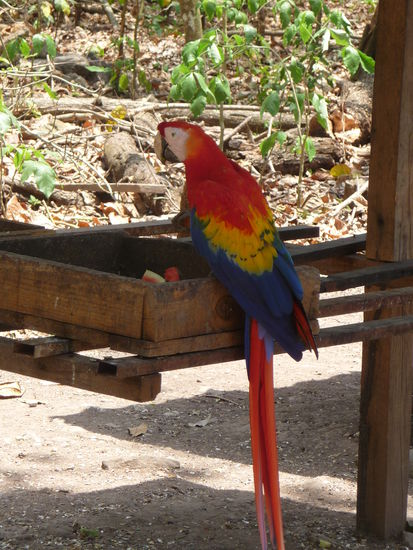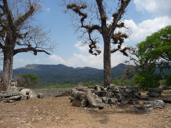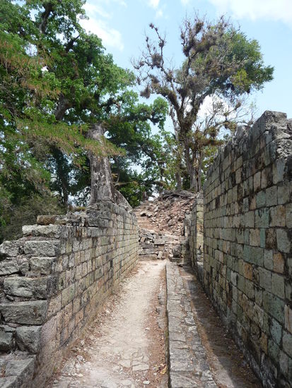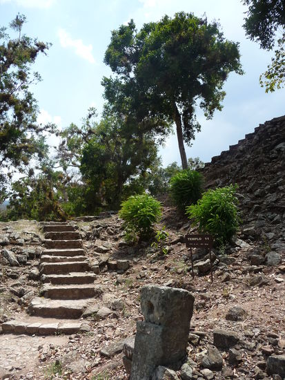 Nach dem wir die Grenze nach Honduras überquert hatten und auch einen kurzen Stop im Dorf Copan Ruinas eingelegt hatten stand mit Copan die Besichtigung einer der großartigsten präkolumbischen Stätten der Neuen Welt an. Um 160 n. Chr. wurde Copan gegründet. 426 n. Chr. begann eine Herrscherdynastie die 4 Jahrhunderte hintereinander herschte. Als Gründer gilt Yax Kuk Moo ( Blauer Quetzal Ara ) . Sein Geschlecht baute die Residenz zu einen blühenden Zentrum von Kunst und Wissenschaft aus. Einer seiner bedeutensten Nachfolger war der 12. Herrscher nach Yax Kuk Moo mit dem Namen Rauch Imix Gott K der 628 n. Chr. den Herrschertitel " ahau " annahm und bis zu seinen Tod 695 Copan zur überregionalen Macht ausbaute.Copan erreichte unter Ihn seine größte Flächenausdehnung und hatte auch die Mayastadt Quirigua unter seine Herrschaft gebracht. Der Nachfolger wurde sein Sohn 18 Kaninchen der den Ausbau der Akropolis und der zentralen Plaza mit kunstvollen Stelen durchführte und dazu die besten Bildhauer und Kunsthandwerker seiner Zeit um sich versammelte. Anders als seine Vorgänger konnte er die Macht Copans nicht vergrößern sondern wurde im Gegenteil sogar 738 n. Chr. in einer Schlacht vom Fürsten Quiriguas Cauac Himmel ( Stürmischer Himmel ) gefangen genommen und kurz danach rituell geköpft. Ironischerweise war es 18 Kaninchen selbst der 14 Jahre früher Fürst Stürmischer Himmel auf den Thron verhalf.Trots dieser Niederlage konnte Qurigua Copan nicht annektieren und bereits 39 Tage später übernahm Rauch Affe 738 bis 749 n. Chr. die Herrschaft. Sein Sohn Rauch Muschel war einer der größten Bauherren in Copan und ließ u.a. die berühmte Hieroglyphentreppe errichten auf der die bis heute längste Inschrift der Mayas zu sehen ist. Im 8. Jahrhundert erlebte die Stadt Ihre Blütezeit bevor diese verlassen und dem Verfall preisgegeben wurde. Seit 1839 wird die Stätte erforscht und seit 1980 gehört Copan zum UNESCO WELTKULTURERBE. Bei der 1989 begonnenen Unertunnelung stieß man auf ein Gebäude das von den Maya später mit Tempel Nr. 16 überbaut worden war. Das unter den Namen " Rosalila " bekannte Bauwerk wurde 573 errichtet und ist das am besten erhaltenste Gebäude im gesamten Mayagebiet. Eine Kopie dieses wunderschönen Tempels kann man u.a. im Museum von Copan bewundern. Leider muß man für die Besichtigung der Tunnel und auch fürs Museum 10 US Dollar extra bezahlen womit ich mich dann doch nur für die Anlage entschieden habe.